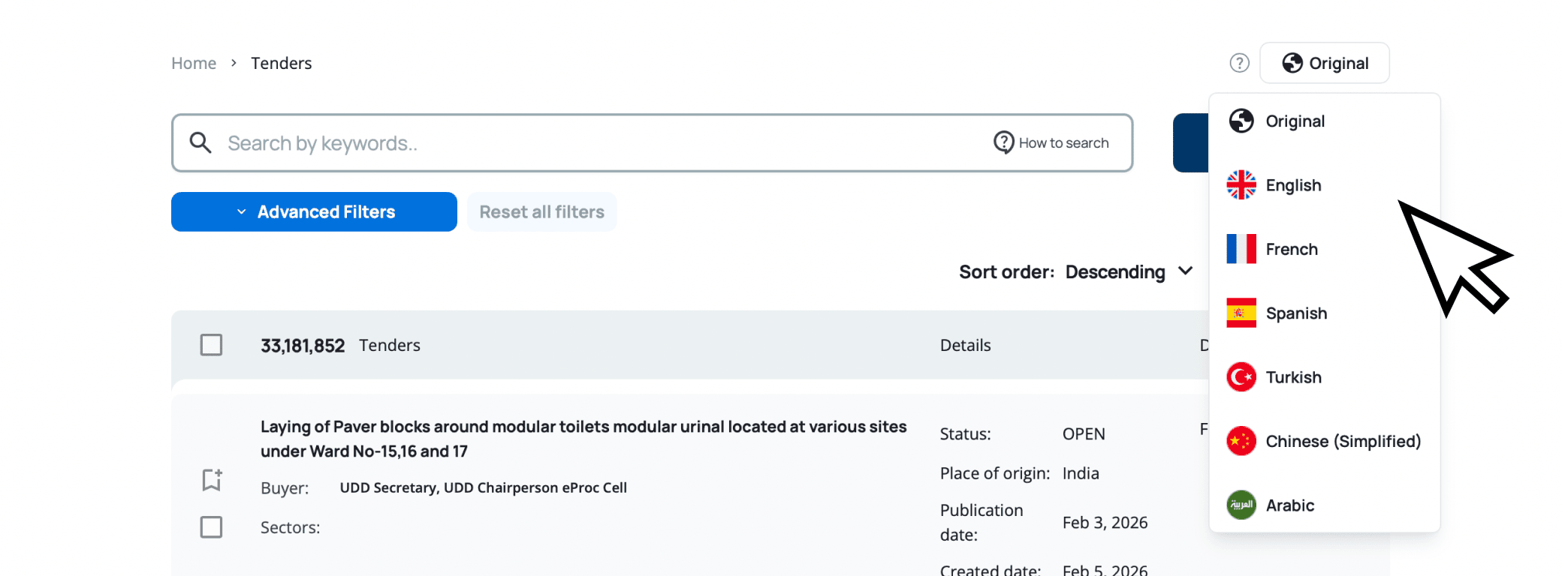 All tenders in one language