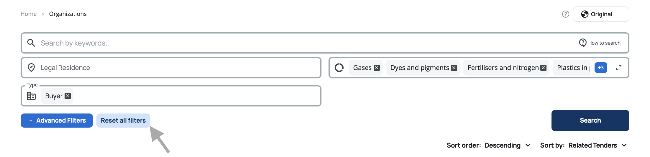Reset all filters – Clear all your selections and return to the default view with all organizations.