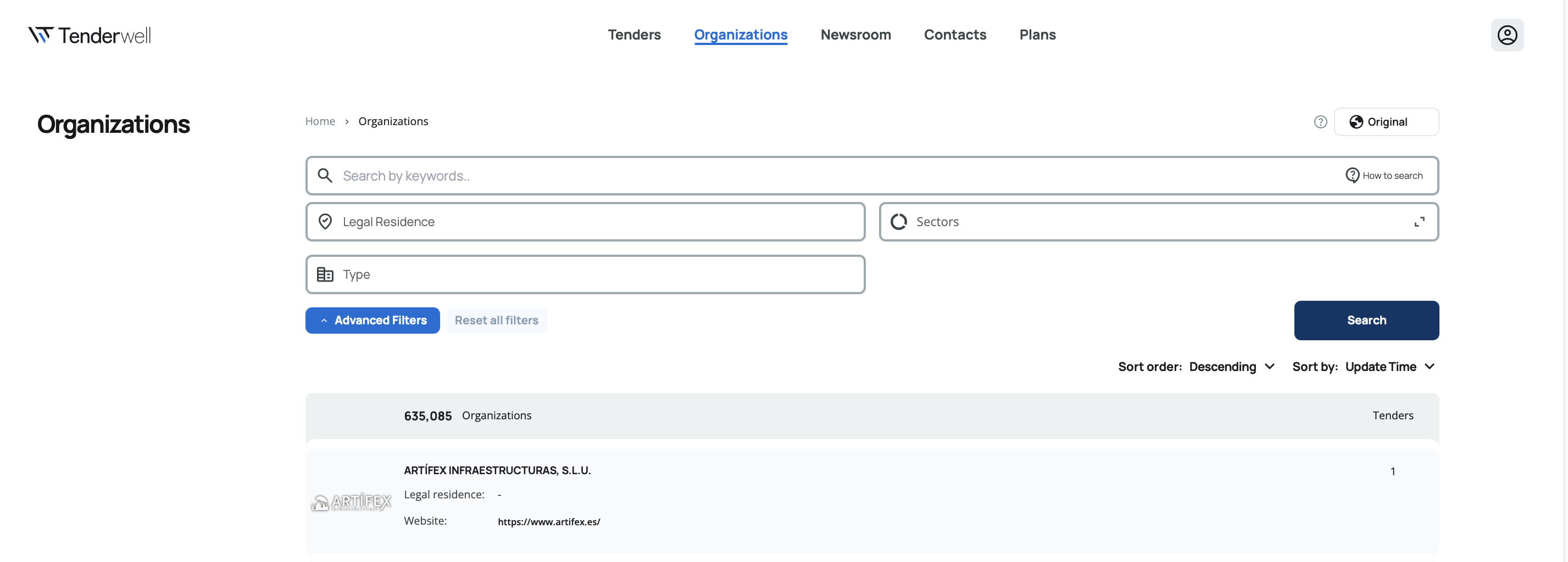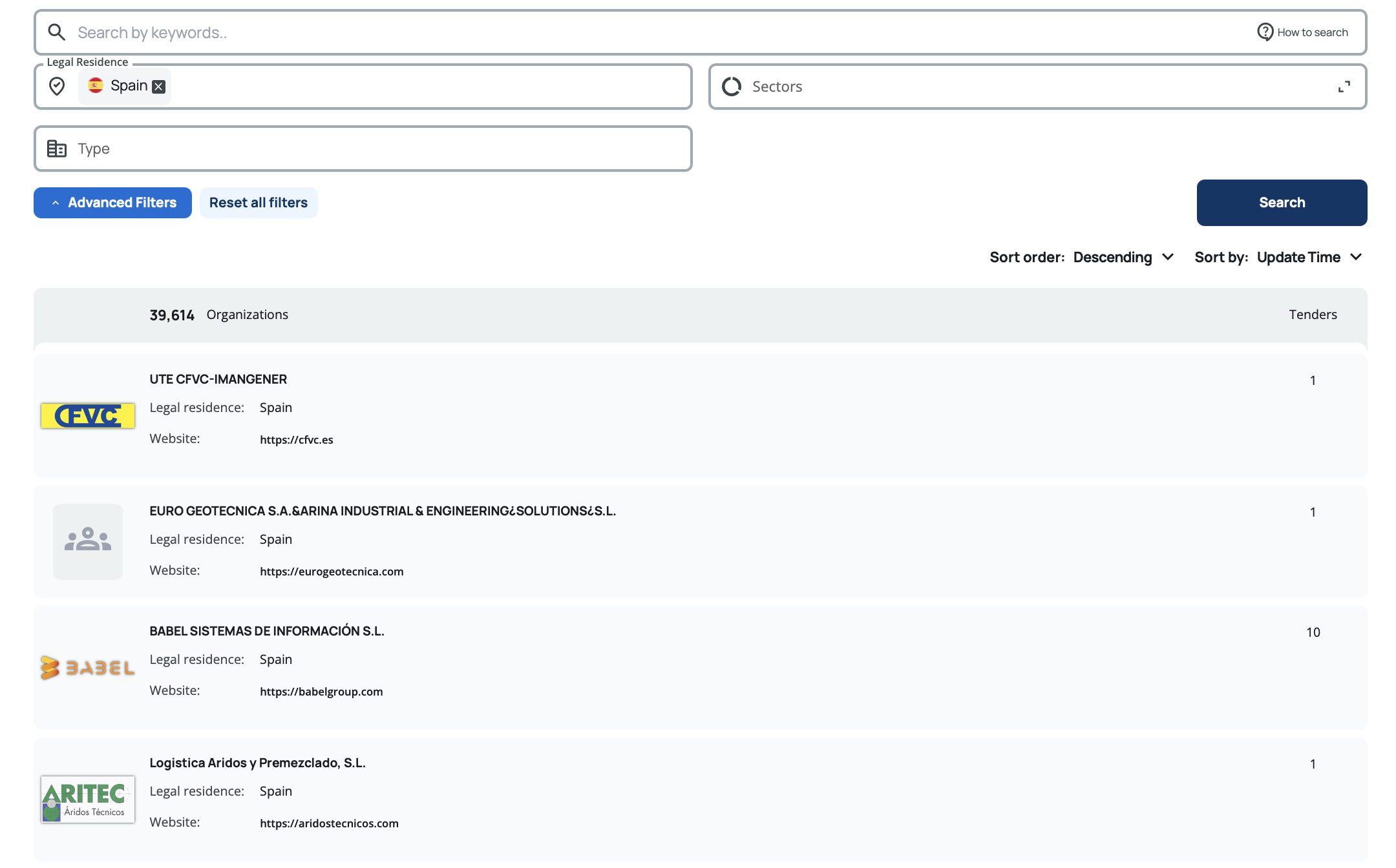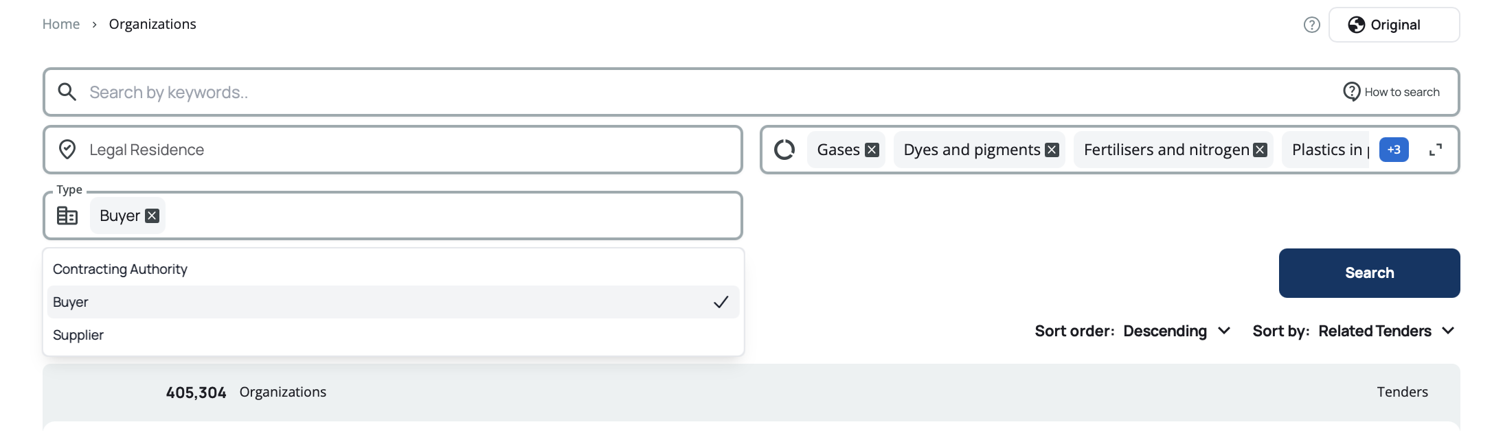 The organization search engine helps you find buyers, contracting authorities, and suppliers across millions of organizations. You can search using free text, apply specific filters, or combine multiple criteria to narrow down results.