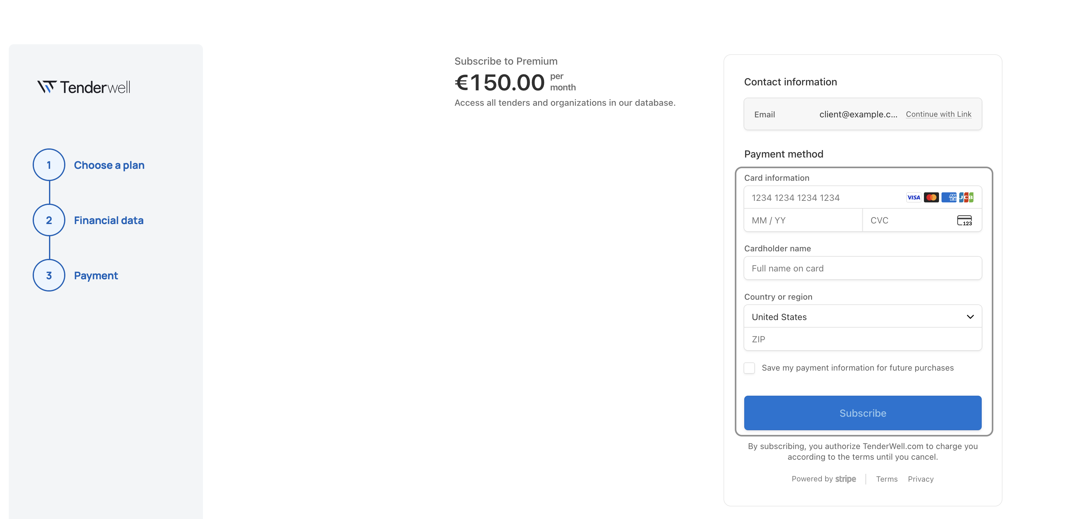 If you have any questions related to payments or subscriptions, please contact us at https://tenderwell.com/contact, we will be glad to help.